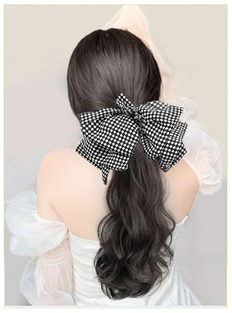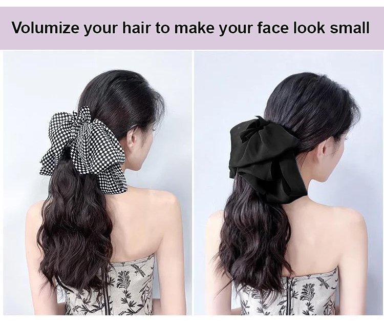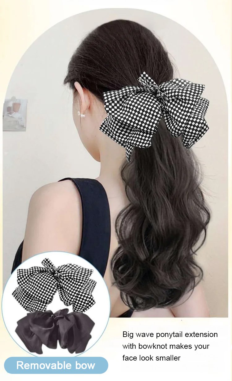 [Gentle and Sweet] Natural Wavy Claw Clip Ponytail Hair Extensions with Bowknot