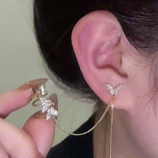 Long Chain Butterfly Ear Bone Clip Ear Chain Earrings