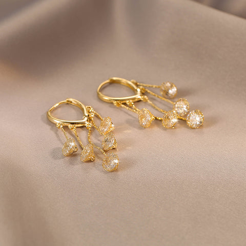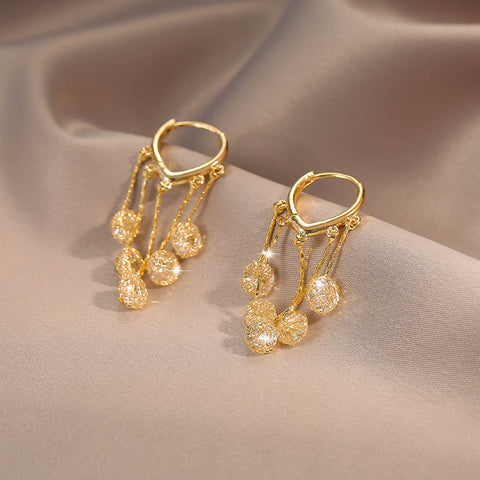 Metal Mesh Diamond Water Drops Long Heart Earrings