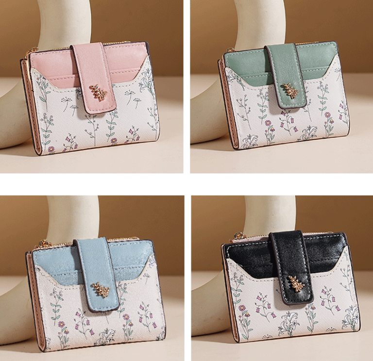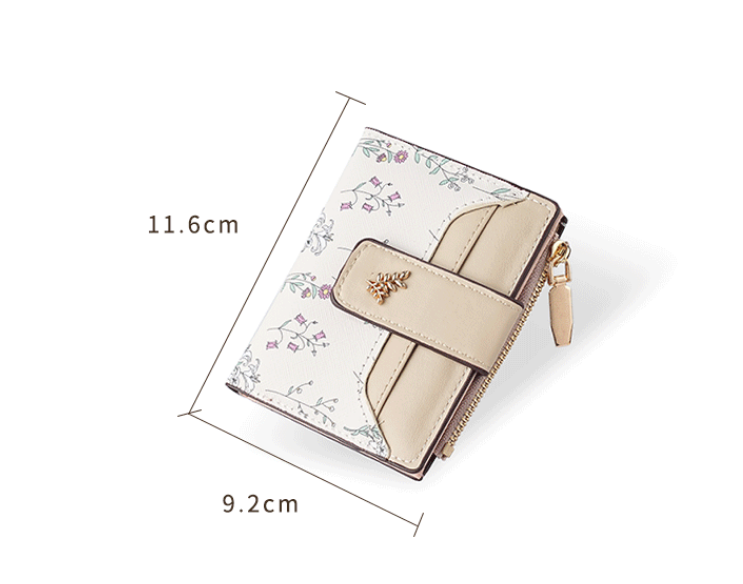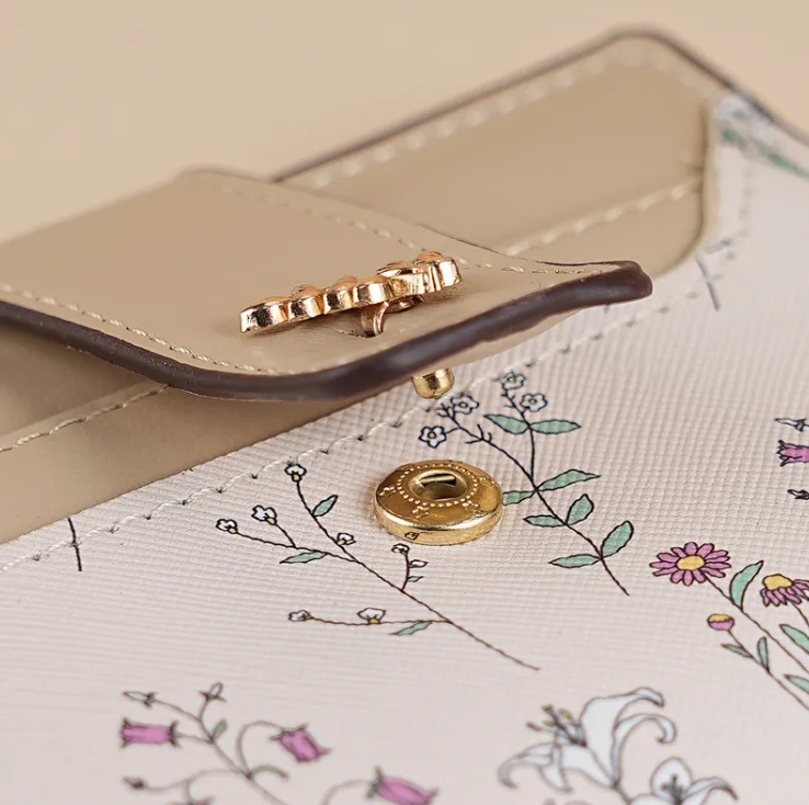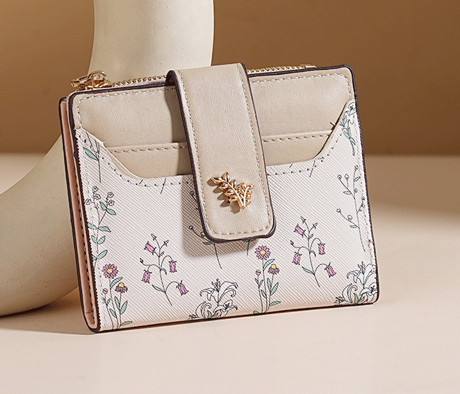 Hey guys! This wallet is super charming! With a fresh floral pattern, contrasting leather buckle, and delicate metal decoration, it's sweet yet stylish. Its small size makes it look elegant in your hand.
