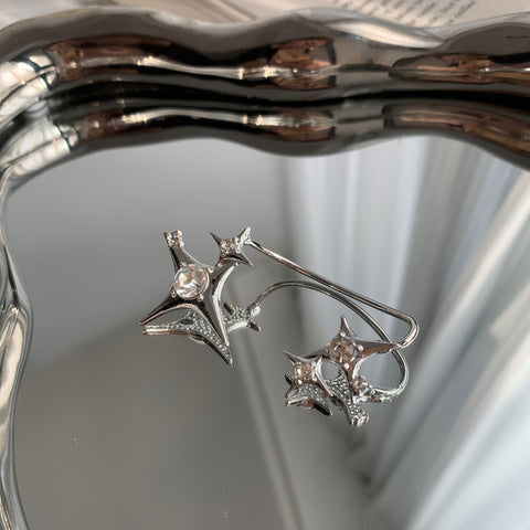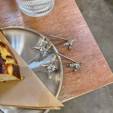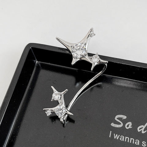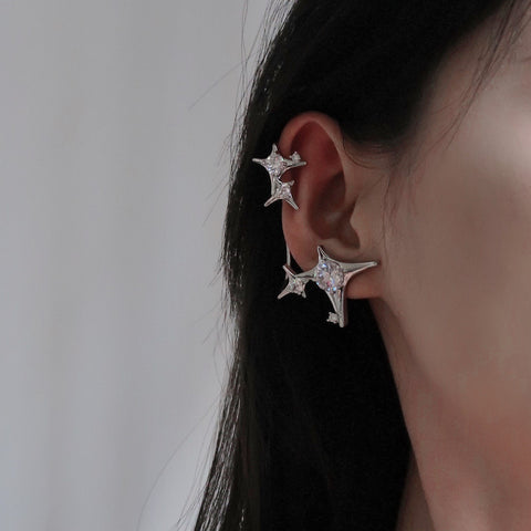 Super Sparkle Diamond Cross Star Ear Clip Earrings